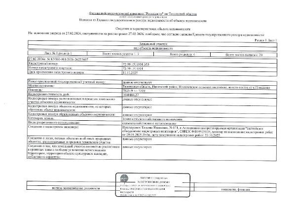 Плешково; площадь земельного участка – 782319 кв. м; кадастровый номер: 72:10:1511001:355; категория земель – земли сельскохозяйственного назначения; вид разрешенного использования земельного участка – сельскохозяйственное использование. Канал: Госземля Тюменская область Область: обл Тюменская Район: м.р-н Ишимский Плешковское сельское поселение Населенный пункт: на юго-восток от с. Плешково Локация: Смотреть на карте ВРИ: Сельскохозяйственное использование Кадастровый номер: 72:10:1511001:355 Кадастровая стоимость: - Вид сделки: Аренда Площадь: 782319 м² Начальная цена: 15607.00 руб. Дата завершения: 20.03.2026 Подробнее: ГИС ТОРГИ #госземля #земляотгосударства #земля #земельныйучасток #земельныеторги #торги #аукцион #арендаземли #аренда #тюменскаяобласть