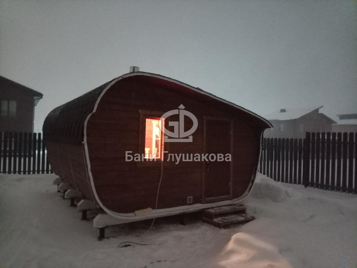Сдали замечательный проект – баню «Танк» размером 4,5х5,7 метра из бочковой термодоски