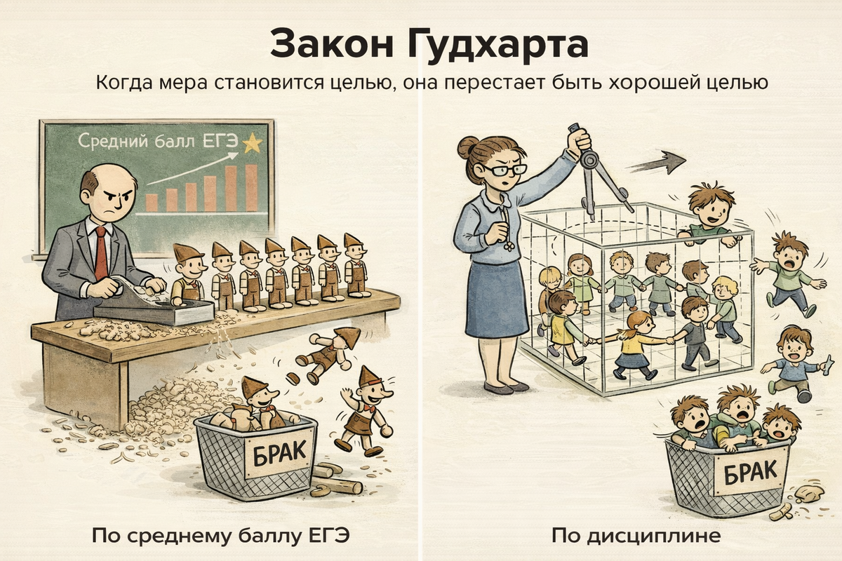 Есть известная управленческая формула, которую сформулировал экономист Чарльз Гудхарт: «Когда показатель становится целью, он перестаёт быть хорошим показателем». На первый взгляд это звучит абстрактно. Но на практике этот закон работает почти во всех системах управления — от экономики до образования. Классический пример — история из промышленности. Представим, что завод оценивает работу рабочих по количеству изготовленных гвоздей.