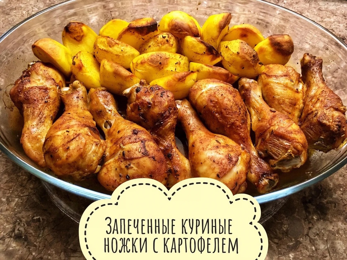 Далее с одной стороны в форму перекладываем ножки, а с другой стороны картофель, нарезанный на половинки. Картофель также обвалять в соусе от ножек.
