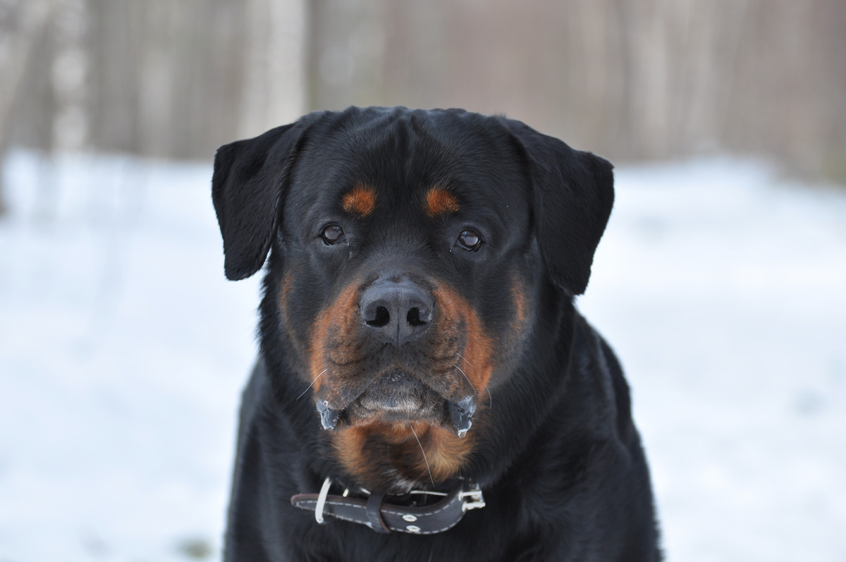 Дан в широком кожаном ошейнике. Летом он гуляет в металлической цепочке, а зимой металл очень холодный, поэтому вожу в широком ошейнике.