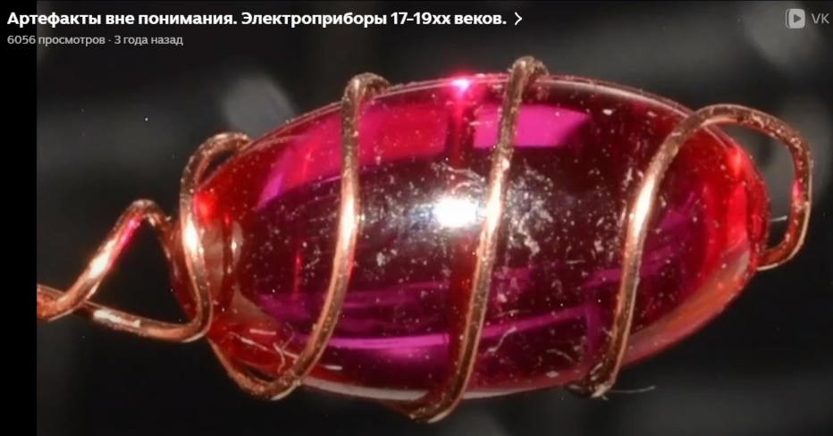 Рубиновый сосуд во взаимодействии с электрическими проводниками выдаёт световое излучение. Давно забытая технология.