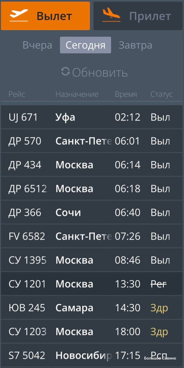 ». С утра в регионе действует режим беспилотной опасности, также введен план «Ковер». Аэропорт Большое Савино временно не принимает и не отправляет воздушные суда. ➡️ На вылет задерживаются самолете в Самару — с 14:00 на 14:30 и в Москву — с 16:00 на 18:00. ⬅️ На прилет опаздывают четыре рейса: из Казани, Уфы и два из Москвы (время ожидания — от 40 минут до двух часов). В Росавиации пояснили — ограничения введены для обеспечения безопасности полетов. Самолеты, следующие в Пермь, временно перенаправляют на другие аэродромы или они уходят на круги в ожидании разрешения на посадку. Пассажирам рекомендуют следить за актуальной информацией на табло аэропорта и в справочной службе. 🔄 Ограничения сняты. ❤️ Подписаться | Предложить новость | Дать «буст» | Мы в MAX