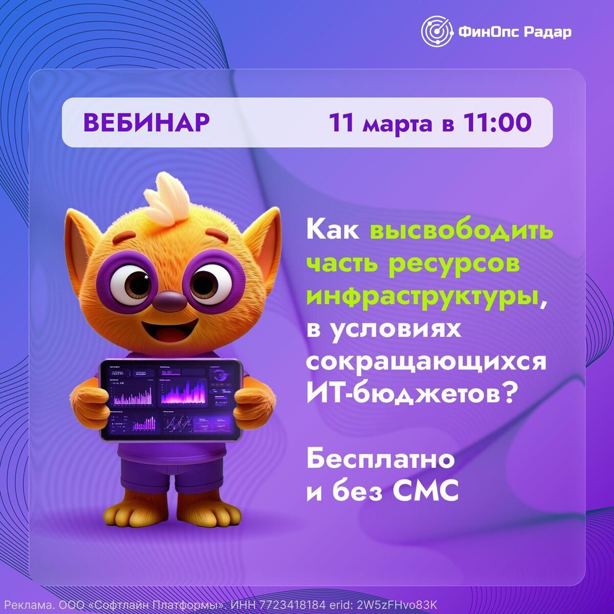 ? Вместо платного решения - бесплатный Финопс.Радар (Финопс - подход к управлению затратами на инфраструктуру) — оптимизация бюджета до 30%! Что вас ждёт: 🔍 Разбор причин роста облачных расходов 📊 Эффективные стратегии для снижения затрат 📈 Принятие решений на основе реальных данных Мы покажем, как использовать доступные инструменты для анализа и построения финансовой стратегии вашей инфраструктуры. Для кого подходит вебинар? - Специалисты в области финансовой оптимизации и облачных вычислений - Технические и директора по продукту - Лидеры бизнеса, руководители команд 🎁 Бонус для участников: Получите чек-лист, чтобы оценить зрелость вашей компании абсолютно бесплатно! 👉 Зарегистрироваться на вебинар Узнайте, как сделать каждый вложенный рубль в облако более эффективным!