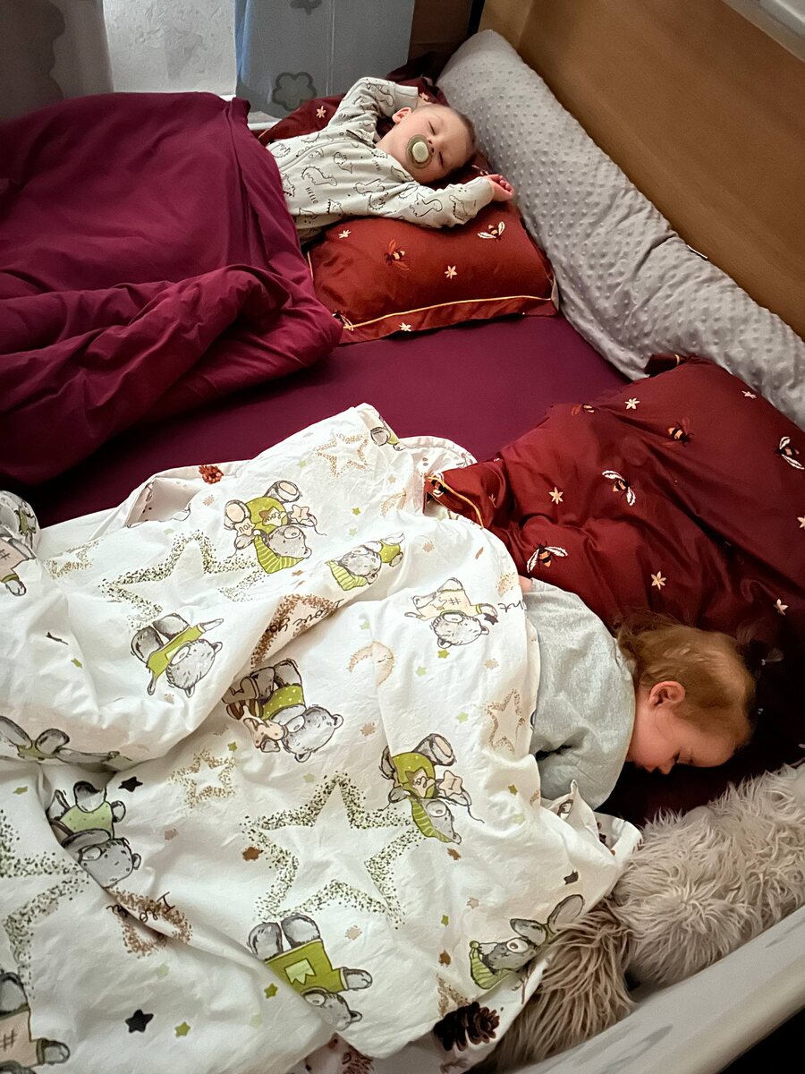 Последнее время мы практиковали сон в разных комнатах, но сегодня Лев и Арианна захотели спать вместе 😌 Но при этом долго не могли поделить игрушки и подушки 😄