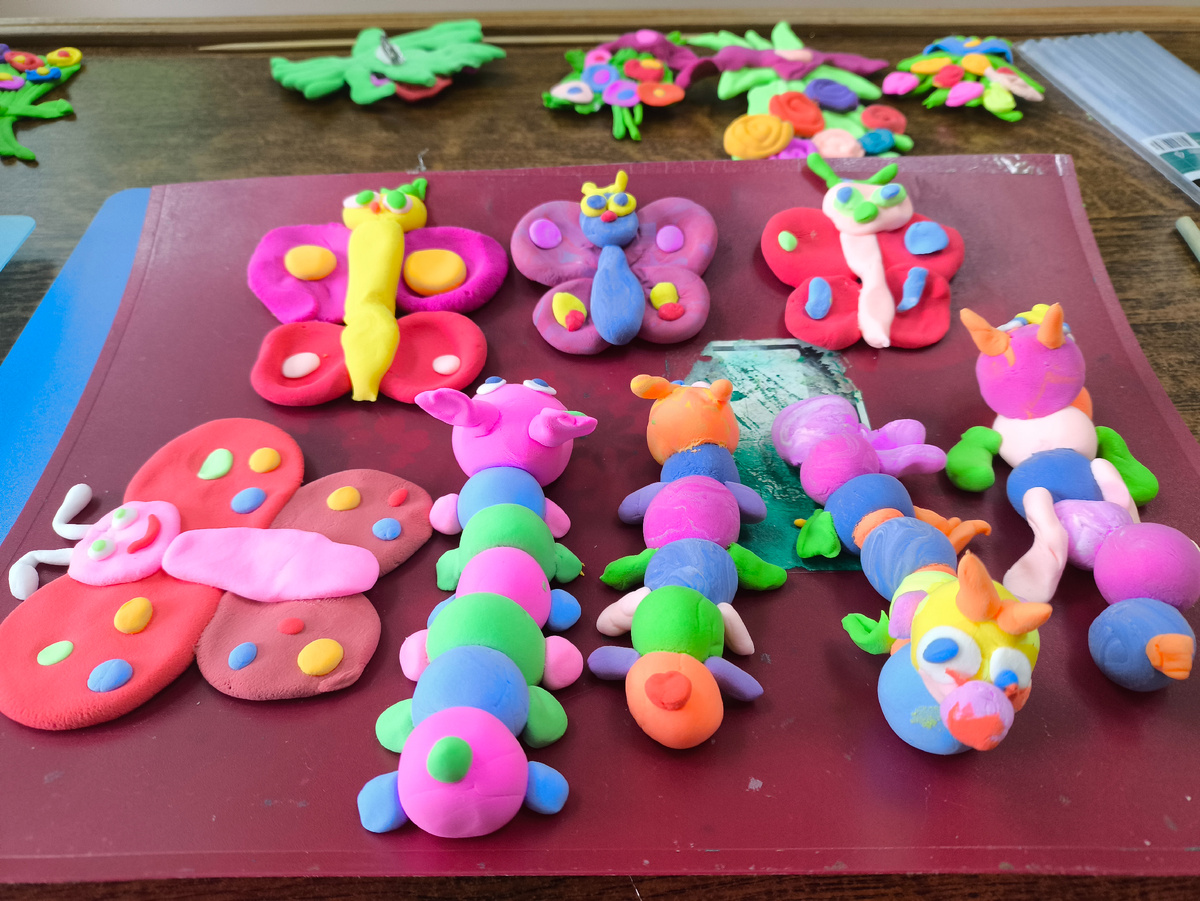 Надо бы написать про гусениц и бабочек, которых дети делали на уроке.
