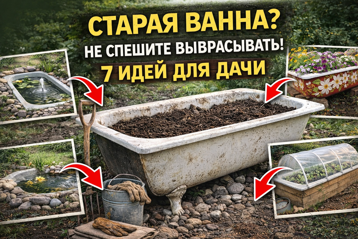 Когда меняют сантехнику, старая ванна чаще всего отправляется на свалку или ржавеет где-нибудь за сараем. Но на самом деле это очень прочная и удобная форма, которую можно превратить в полезную вещь для участка. Немного фантазии — и старая ванна становится грядкой, мини-прудом или даже уютной скамейкой. Вот несколько идей, которые легко реализовать своими руками. Один из самых простых вариантов — использовать ванну как высокую грядку. Что сделать: Такая грядка имеет несколько плюсов: В ней отлично растут: Старая ванна идеально подходит для создания небольшого пруда. Как сделать: Если добавить: получается очень атмосферный уголок сада. Ванну можно превратить в большой цветник. Интересный вариант — поставить её: После этого ванну можно: Получается необычный садовый акцент. Если ванна металлическая или вовсе чугунная, её можно разрезать вдоль или поперек. Получится основа для: Внутрь кладут: Такая мебель смотрится очень необычно. Ванна может стать удобным контейнером для компоста. Пл