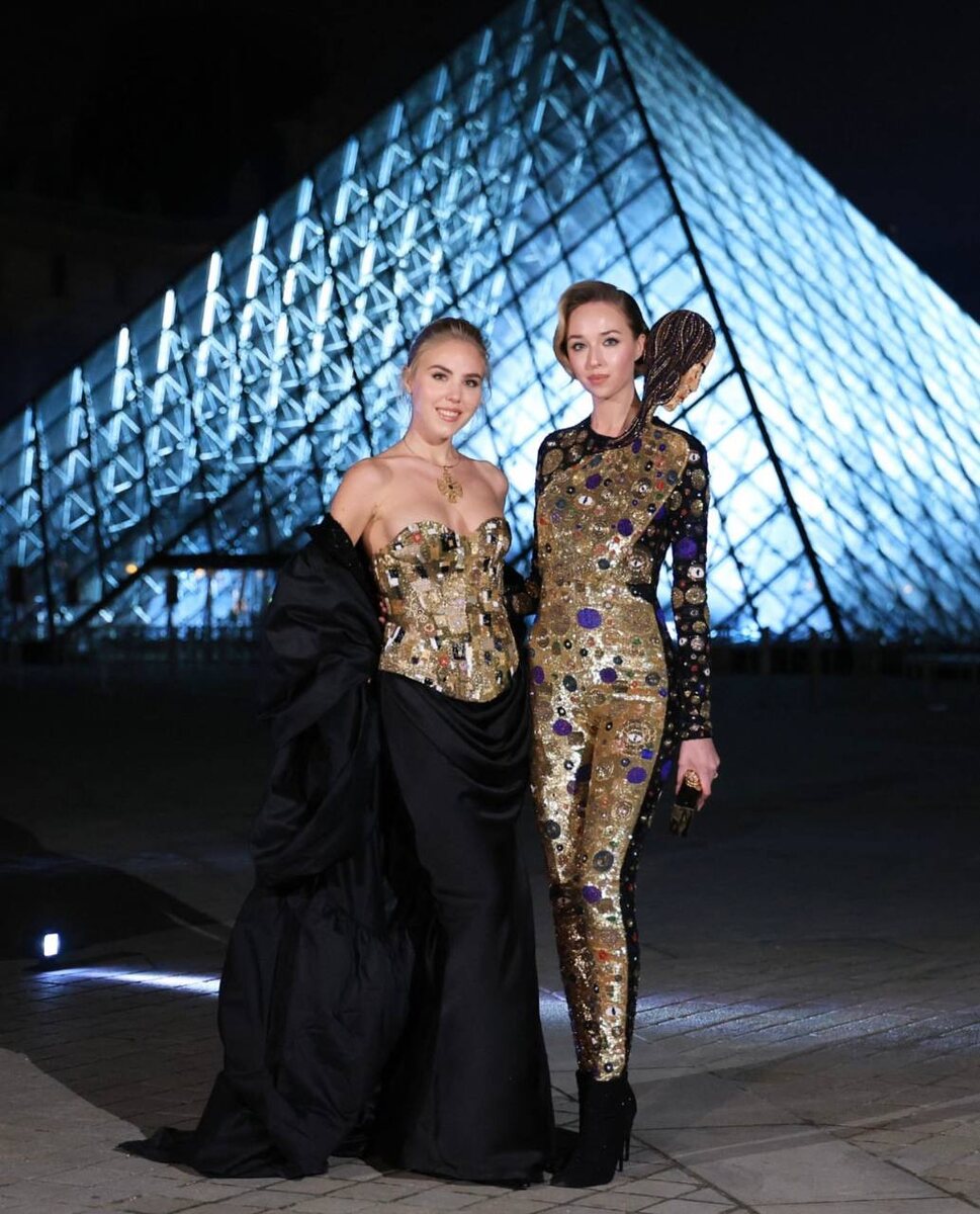 Сестры, принцессы Бурбон-Сицилийские словно сошли с картин Густава Климта на ужине в честь памяти художника в Лувре.