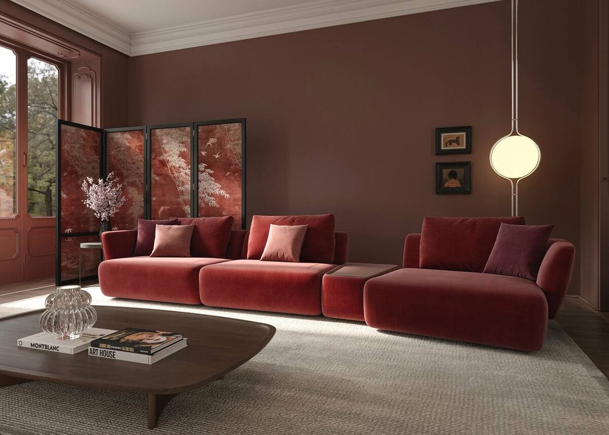 Диван VERITAS из новой коллекции в глубоком оттенке Crimson Bloom - как раз про это состояние. Мягкие формы, актуальный силуэт и продуманная посадка делают его не просто акцентом, а центром притяжения в гостиной. Иногда для обновления пространства достаточно одного правильного цвета ❤️