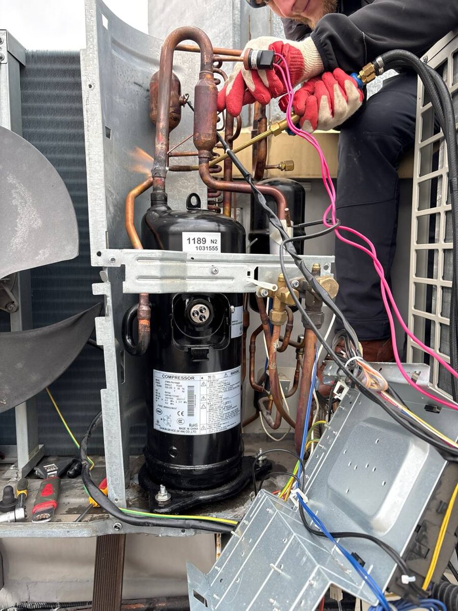 В ходе диагностики была выявлена индикация аварии Е5 — блокировка мотора компрессора по превышению тока. Инженеры установили причину: пробитие обмотки компрессора на корпус вследствие перегрева. Виновником поломки оказался вышедший из строя регулятор давления конденсации, установленный поставщиком оборудования.