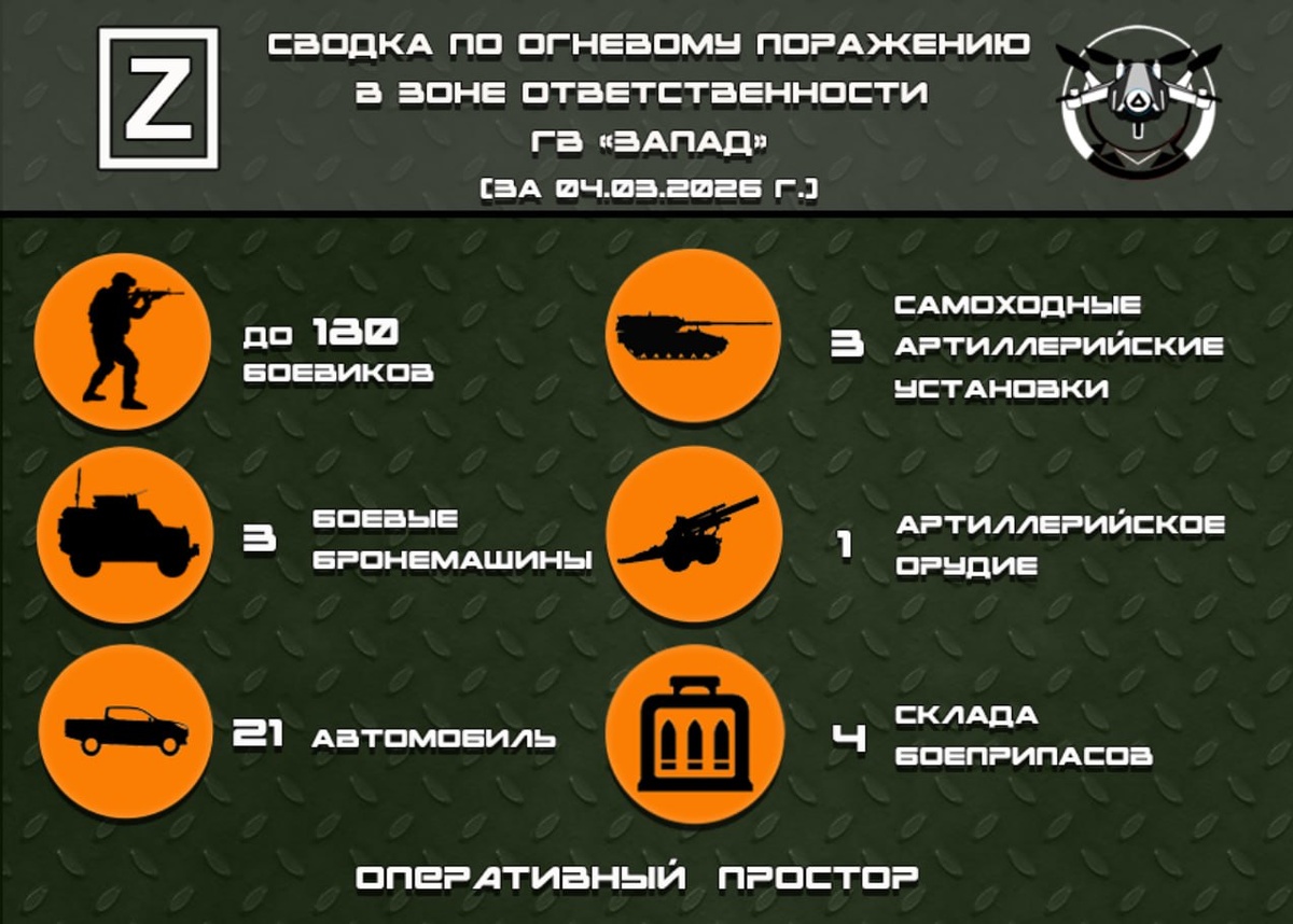 Сводка по огневому поражению в зоне ответственности ГВ «Запад» за 04.03.2026 г