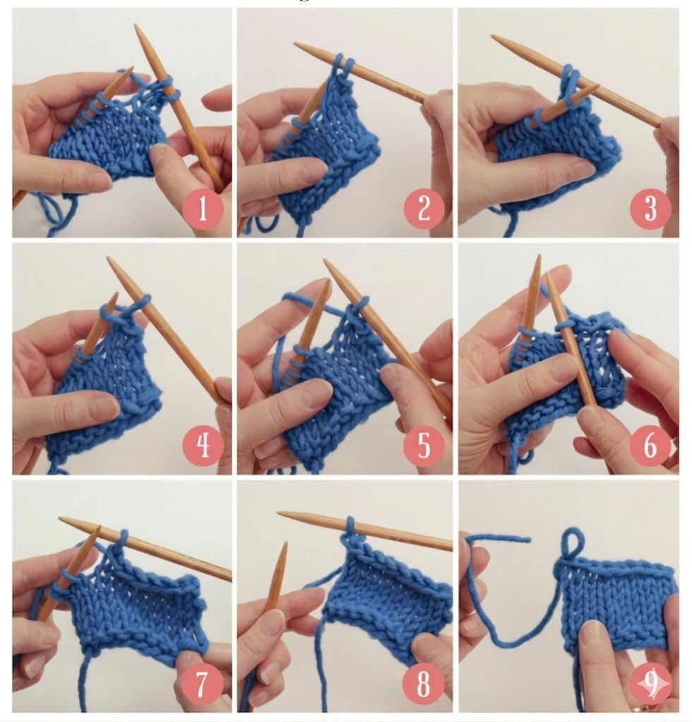 Этот способ используется при вязании лицевой гладью для оформления пройм, вырезов горловины, плечевых швов или нижнего края изделия. Важно: Следите за тем, чтобы закрытый край не был слишком свободным или слишком тугим. Совет: Чтобы край остался эластичным, можно использовать спицу на полразмера или размер больше основного. Рис. 1: Провяжите 2 петли лицевыми.