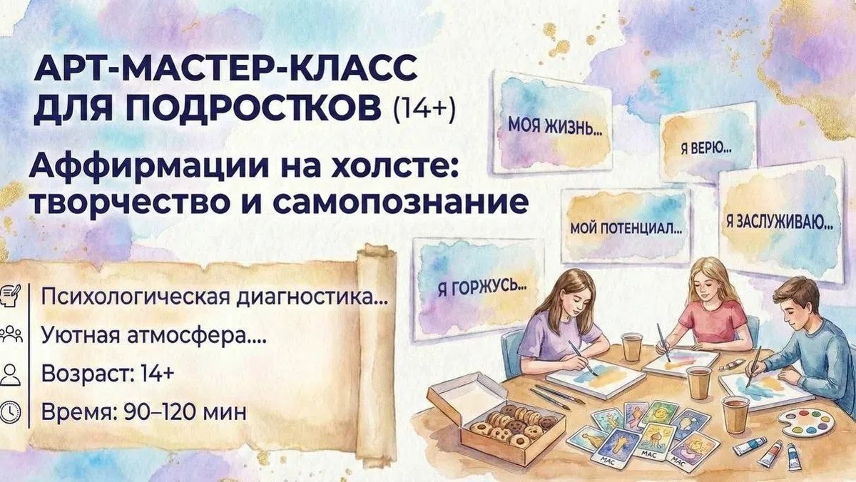 🎨 Если вашему подростку не хватает уверенности, хочется творить, пробовать новое и лучше понимать себя — этот мастер‑класс станет настоящей творческой перезагрузкой 🌈✨ На встрече каждый создаст свою арт‑картину с аффирмациями — мощными фразами, которые помогают формировать внутреннюю опору, уверенность и ощущение «я могу» 💫🌿 Что ждёт участников • 🖌🎨 Создание личного холста‑аффирмации — яркого, смелого и очень вдохновляющего • 🔮🧠 Лёгкая диагностика через творчество и МАК‑карты — мягко, экологично, интересно • ☕🍪 Тёплая атмосфера: чай, вкусняшки, уют и свобода быть собой • 💡🌟 Пространство, где можно выразить себя без оценки и сравнений Подходит подросткам, которые • хотят лучше понять свои чувства 🌬 • любят творчество и эксперименты 🎭 • ищут спокойное пространство для перезагрузки 🌿 • хотят повысить уверенность и самоценность 🌞 Время 90–120 минут Группа всего 6 человек 👥 Ведёт психолог Ольга Александровна Кондукторова 🌼 Запись в личные сообщения ⤵️ https://vk.com