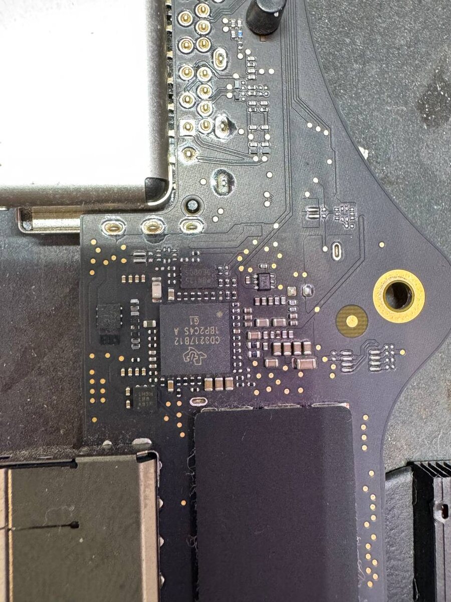 Сгорел правый контроллер usb-c, и все три разъема под замену. Контакты стёрты на разъемах, это признак, что используется некачественный кабель/аксессуар c жесткими пружинными контактами. Выбирайте качественные акссесуары, а для зарядки безопаснее использовать разъём MagSafe.