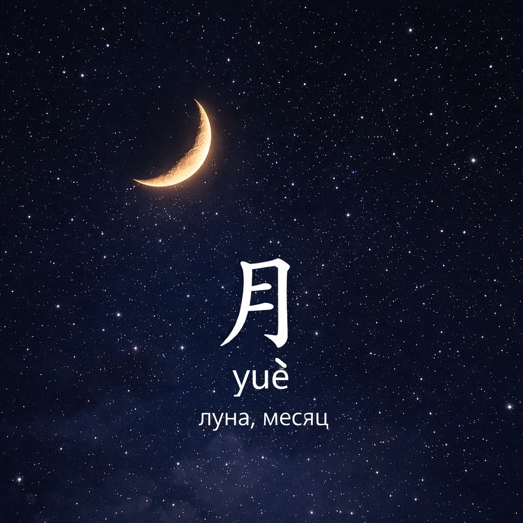 Приветствую! Сегодня мы поговорим о самом романтичном ключе китайской письменности. Посмотрите на него: 月 (yuè) — тонкий серп, освещающий ночное небо. 🌙