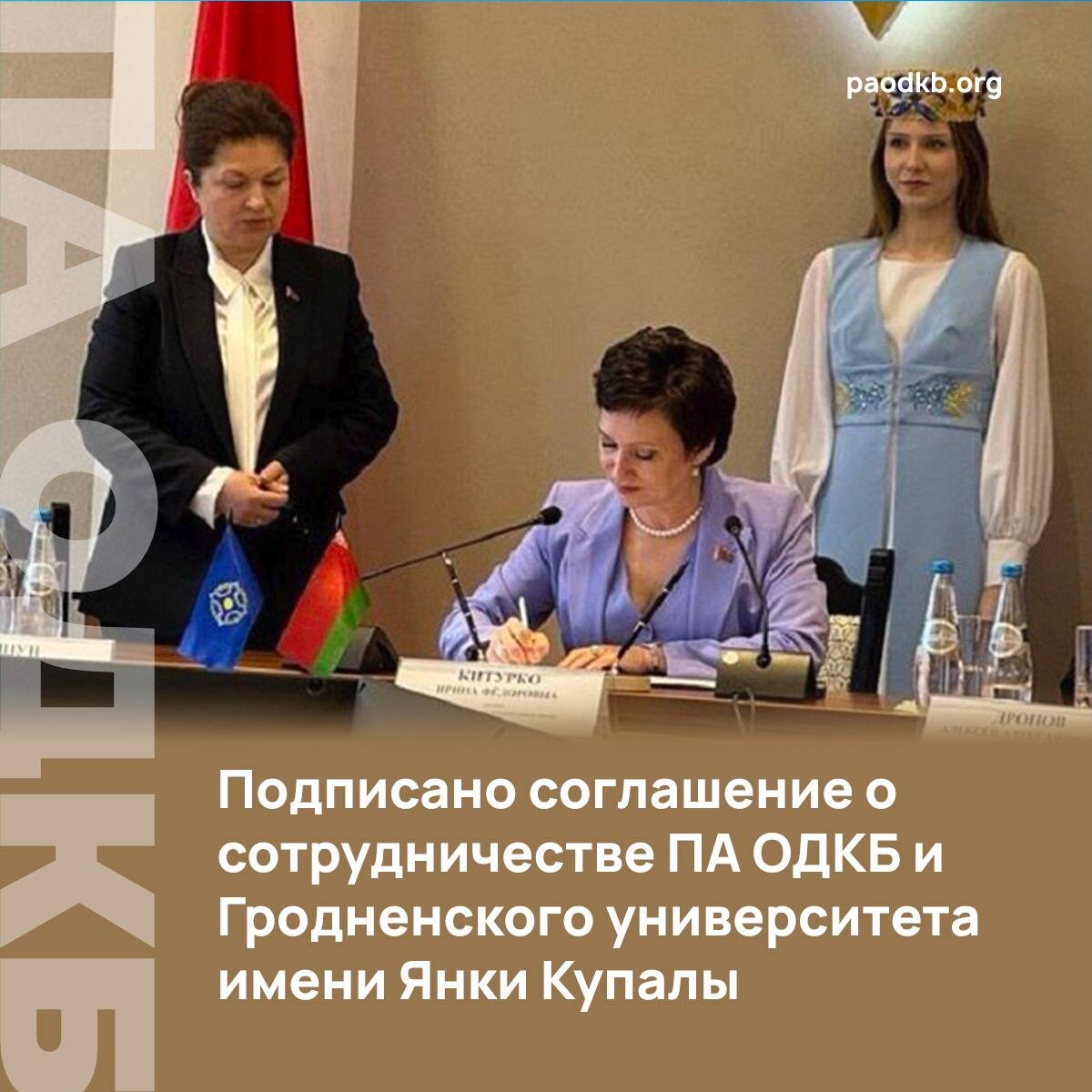 юридической науки и практики». 💼 В рамках мероприятия представители Секретариата Парламентской Ассамблеи ОДКБ и Гродненского государственного университета имени Янки Купалы обменялись подписанными договорами о сотрудничестве на уровне экспертно-аналитической деятельности в рамках Информационно-аналитического правового центра ПА ОДКБ и Экспертно-консультативного совета при Совете Парламентской Ассамблеи ОДКБ, а с 2025 года - в области модельного законотворчества. 🔴 Ответственный секретарь Парламентской Ассамблеи ОДКБ Сергей Поспелов в своем выступлении поделился законотворческим опытом Ассамблеи, ее достижениями в рамках международного парламентского сотрудничества, а также планами деятельности на среднесрочную перспективу до 2030 года. «Намечены конкретные меры по совершенствованию правового обеспечения кризисного реагирования, функционирования военной составляющей Организации и ее компонентов с учетом опыта СВО и современных вооруженных конфликтов, включая решение ряда актуальных
