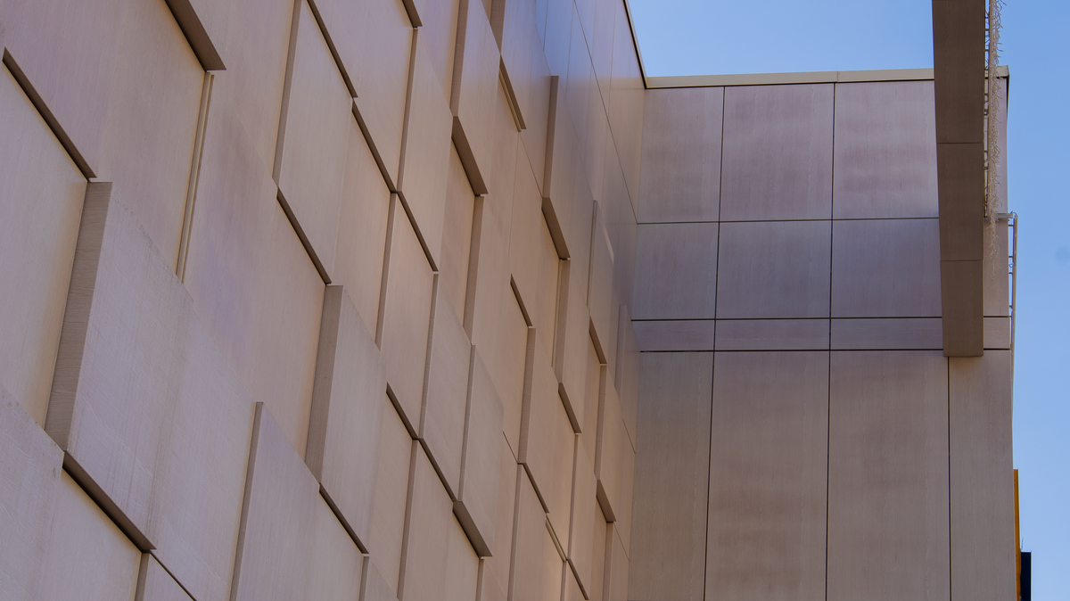 Сублимация на металле - это технология, которая превращает обычную алюминиевую панель в фотореалистичную имитацию дерева, камень или даже кожу рептилии. Сублимация - это технология переноса изображения на металл с помощью высокой температуры. Фотореалистичность. Можно перенести любую текстуру в высоком разрешении и превратить металл в буквально во все, что угодно, сохранив при этом его физические свойства. Вечность. Изображение не выгорает на солнце (цвет немного изменяется, но это лишь добавляет красоты зданию), не стирается, не смывается дождём. Гарантия на цветостойкость - 10-15 лет. Реально держится 20-25 лет. Тактильность сохраняется. Если на панели был рельеф (тиснение), он остаётся. Получается дерево, которое не только выглядит, но и на ощупь как дерево. Самое популярное применение. Хотите деревянный фасад, но дерево дорого, гниёт, требует ухода? Сублимация на алюминии даёт вид дерева без проблем дерева. Один из самых ярких примеров в нашем исполнении - это ЭКО Парк Мурино (Санк