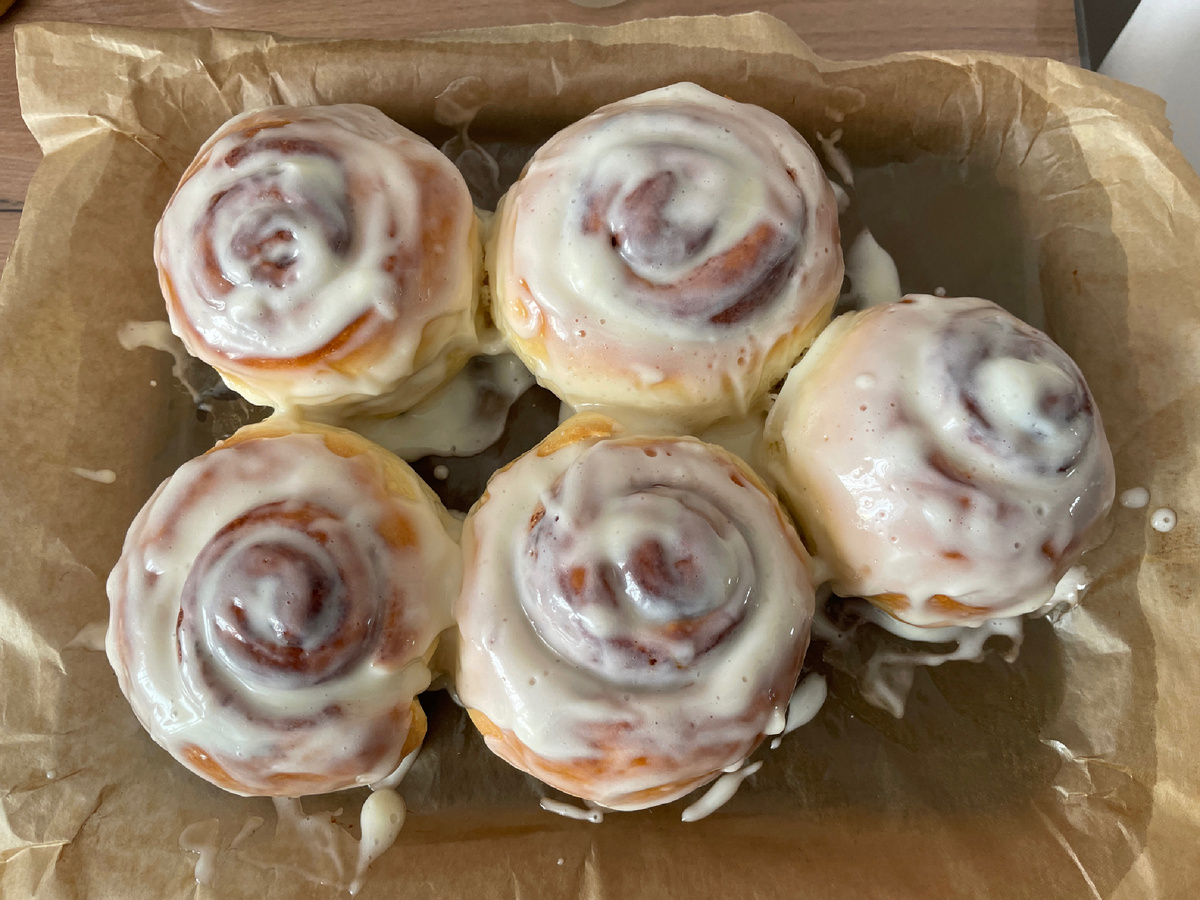 Готовые синнабоны покрыть кремом, пока они горячие.