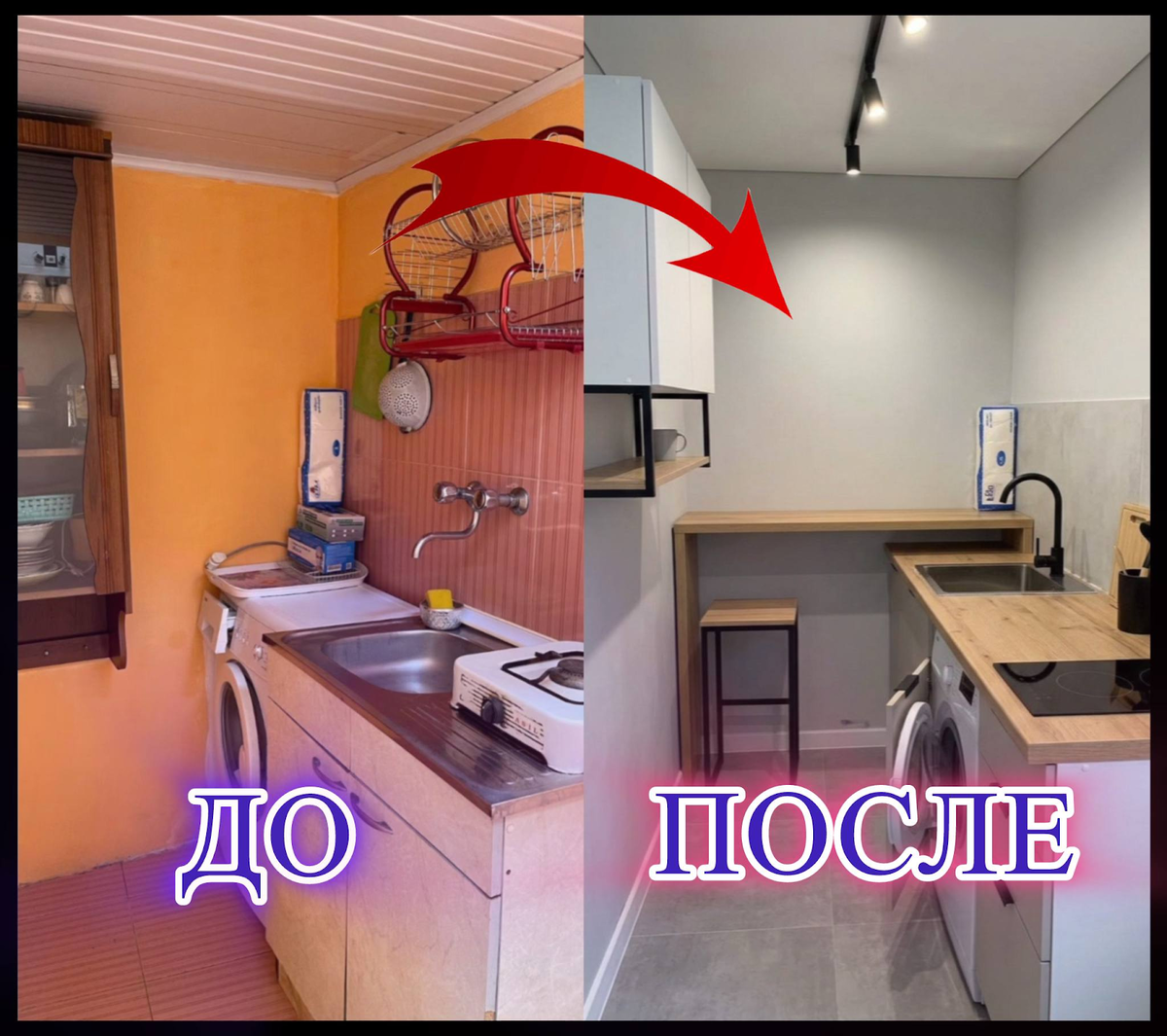 "Лен, с чего начинать будем — это вопрос. Проблем тут много." Однушка ~38 кв.м., четыре зоны, бюджет 620 000 ₽, три месяца работы. Гостиная встречала персиковыми стенами и кухонным угловым диванчиком посреди комнаты, именно тем, который ставят за обеденный стол. Ни зоны отдыха, ни рабочего места, ни нормального хранения. Один массивный тёмный шкаф на полстены и хлипкий столик из ДСП. В спальне стояли две кровати вплотную. Вторая выполняла роль полки для одежды, шкафа в комнате не было вообще. Персиково-жёлтые стены, вздувшийся ламинат, пластиковая люстра. Гладильная доска у стены как полноправный элемент интерьера. Кухня шириной меньше метра. Оранжевые стены, розо