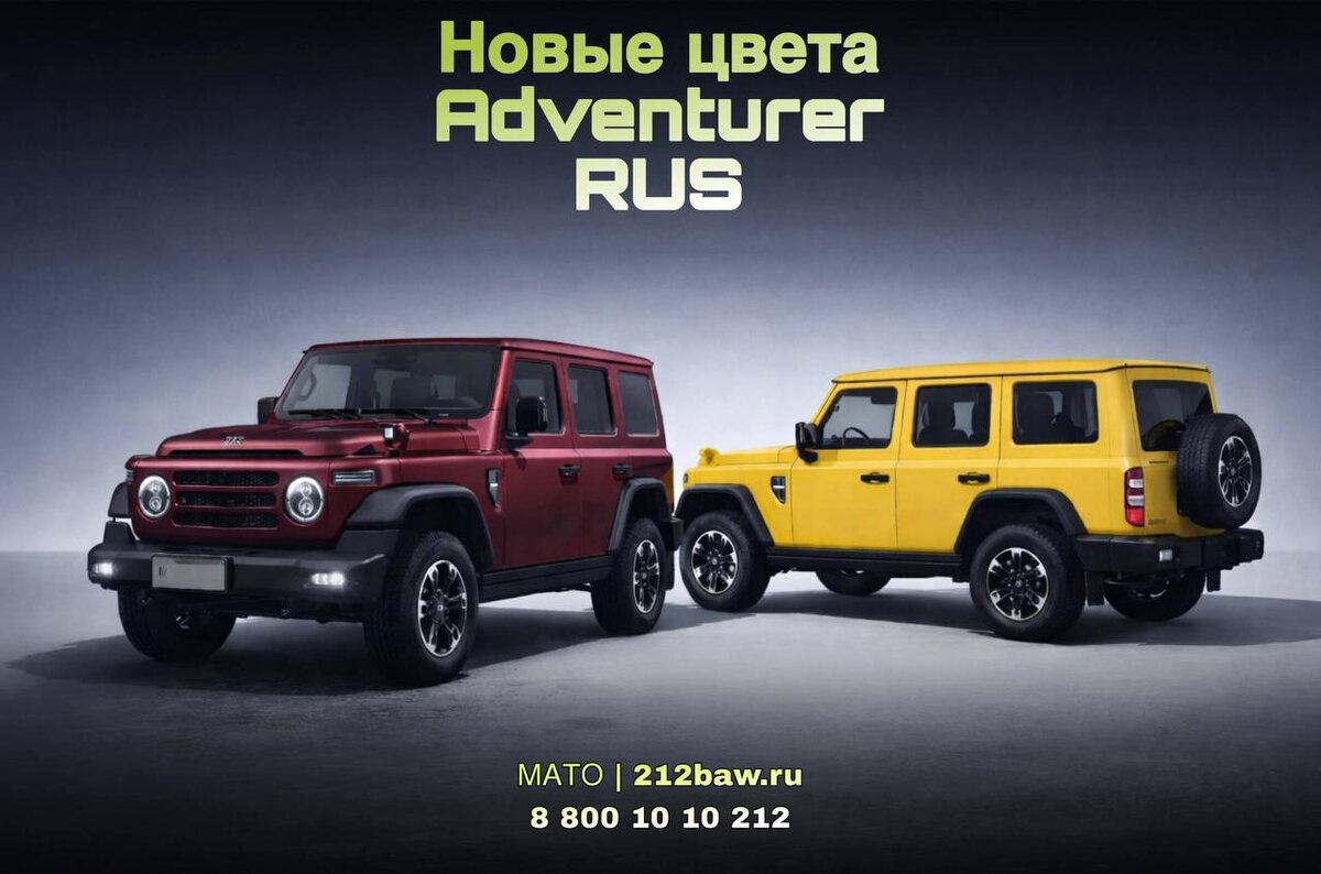 Грядет яркое обновление! Стало известно, что завод BAW активно готовится к расширению цветовой гаммы своей культовой модели 212 Adventurer RUS. В ближайшее время мы ожидаем презентацию первых образцов внедорожников, окрашенных в два новых, очень сочных и насыщенных цвета: бордовый и желтый. 212 особенный во всем ,а новые цвета еще больше подчеркивают его самобытность💪 А теперь вопрос к Вам, будущим владельцам и ценителям 212! Как Вам новые расцветки? Какой из этих ярких цветов Вы хотели бы видеть на своем 212 Adventurer RUS? 👉 Голосуйте в опросе за свой любимый цвет! #212t01 #bj212 #baw212 #baw #mato #мато 🏁 Тест-драйв в Москве – оцените комфорт и динамику 🔧 Гарантийное и техническое обслуживание Наши контакты: • 8 800 10 10 212 и 8 495 10 15 212 • @manager212russia • 212baw.ru 📍Адрес шоу-рума: Россия, Московская область, тг.Одинцово, с.Немчиновка, ул. Московская, д.61. Построить маршрут