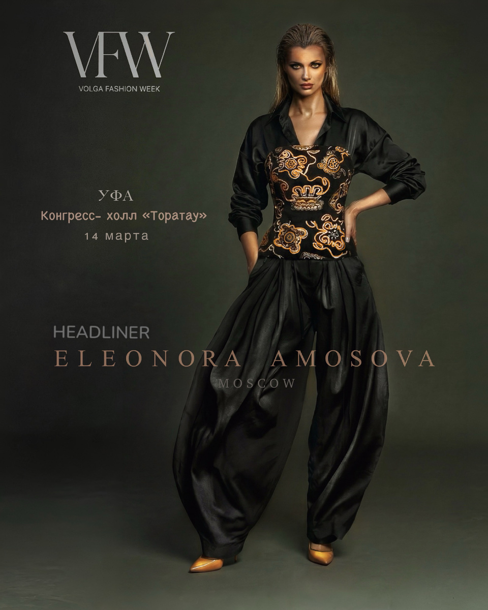 Открывает взрослый блок Недели моды московский бренд ELEONORA AMOSOVA. Основатель бренда — модельер, цифровой художник, кандидат наук, член Союза дизайнеров Москвы и Ассоциации высокой моды и прет-а-порте- Элеонора Амосова. Более 15 лет бренд успешно представляет авторские коллекции из кожи на российском и зарубежном рынках.