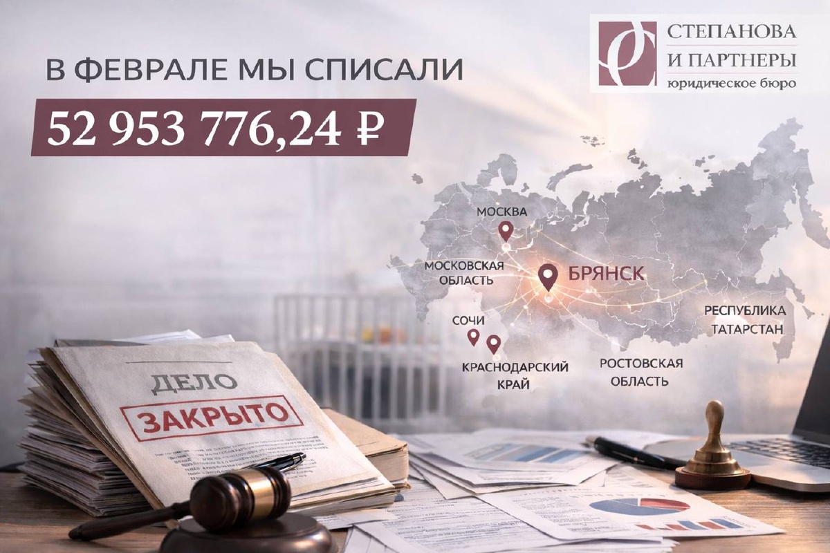💼 Если разделить эту сумму на 39 дел, получается в среднем около 1,36 млн рублей на одного человека. Это те долги, которые обычно выплачиваются годами, с процентами и постоянной финансовой нагрузкой. В феврале мы работали с клиентами из Москвы, Московской области, Сочи, Краснодарского края, Брянской области, Ростовской области и Республики Татарстан 🌍 И здесь особенно важно сказать: мы — региональное бюро, находимся в Брянске, у нас нет сети офисов по всей стране. При этом нам доверяют люди из разных уголков России, а мы сопровождаем процедуры полностью дистанционно, «под ключ», доводя каждое дело до судебного решения ⚖️ Для нас это действительно ценно, и мы искренне благодарим каждого клиента за доверие 🤍 Февраль закрыт сильным результатом, и мы продолжаем двигаться дальше 🚀