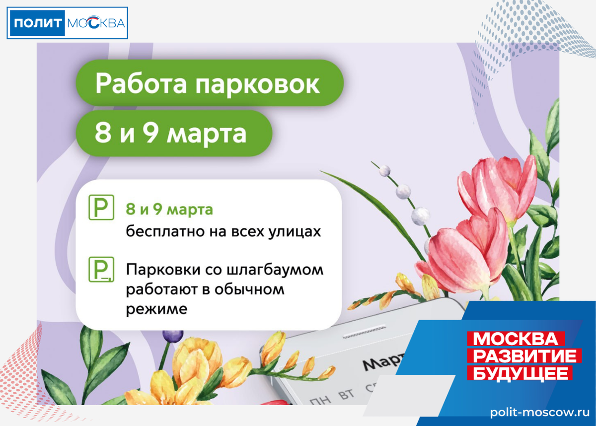 В Международный женский день парковки в Москве будут бесплатными. Об этом Сергей Собянин рассказал в своем канале. «8 и 9 марта парковка в Москве будет бесплатной. В том числе на улицах с тарифами 380, 450 и 600 рублей в час и в зонах динамического тарифа», — написал Мэр Москвы.