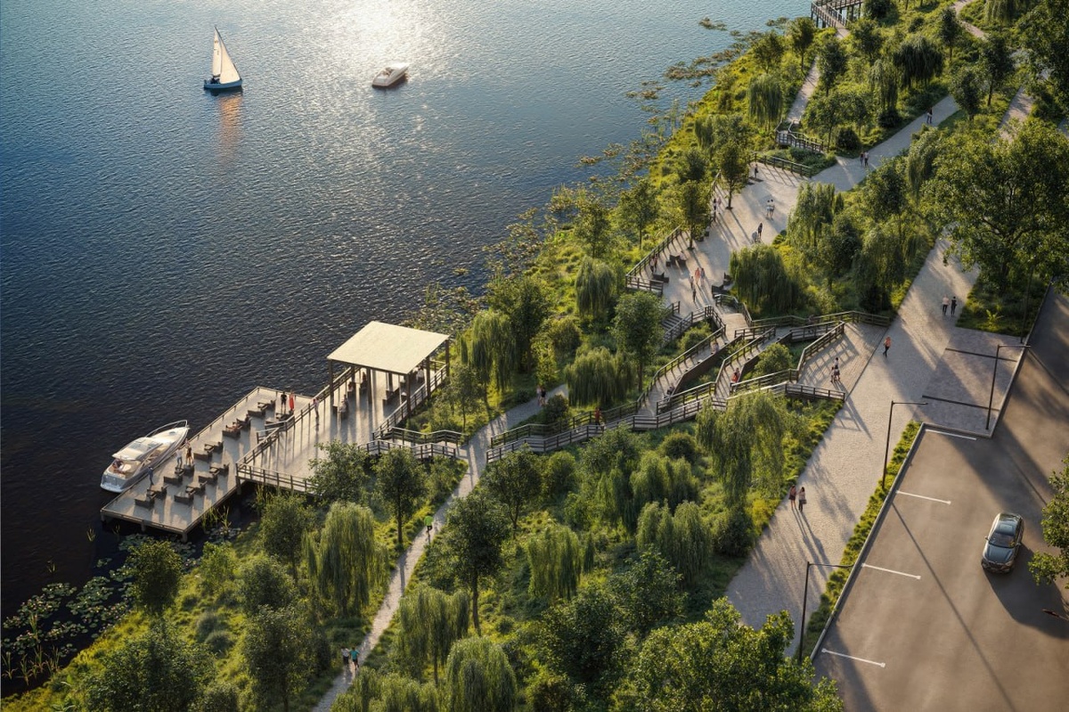 На рендерах изображён как раз тот участок набережной, куда смотрит одна из камер, установленных на территории строящегося жилого комплекса