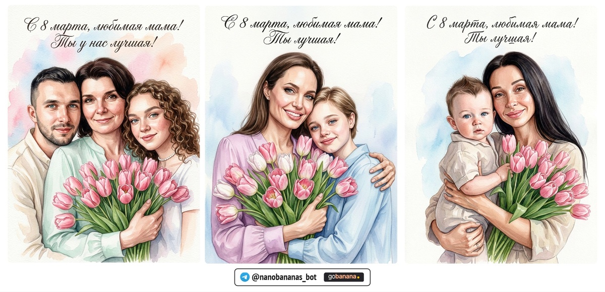 Мы собрали 25 готовых промптов к 8 марта для @nanobananas_bot и GoBanana.ru. Для мамы, бабушки, подруг, себя. От открыток до фотосессий с цветами.