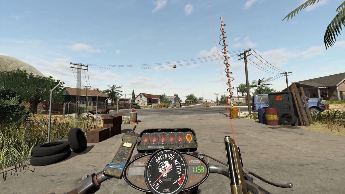 Видео обзор для тех кто не хочет читать Недавно я поиграл в Hell Road VR и сейчас расскажу вам об этой игре. Наша история начинается с того, что мы выезжаем из гаража и просто едем по дороге в неизвестном направлении. Во время поездки нам предстоит отстреливать зомби и разнообразных монстров. Управление мотоциклом сделано хорошо. Повороты осуществляются не за счёт нажатия на стик, а через наклон головы. Вся игра состоит из нескольких уровней, которые мы должны проехать на время. На руле есть два таймера. Левый указывает, за сколько нужно добраться от одной контрольной точки до другой.А правый — за какой срок необходимо завершить весь уровень. Каждая авария отбрасывает на контрольную точку, а на экране появляется потрескавшееся стекло. Следующие ошибки будут увеличивать уровень повреждения шлема. А если вы будете врезаться много раз, вас и вовсе скинет в самое начало уровня. По пути арсенал пополняется различным оружием и боеприпасами. А также тут есть модификация на мотоцикл, которая п