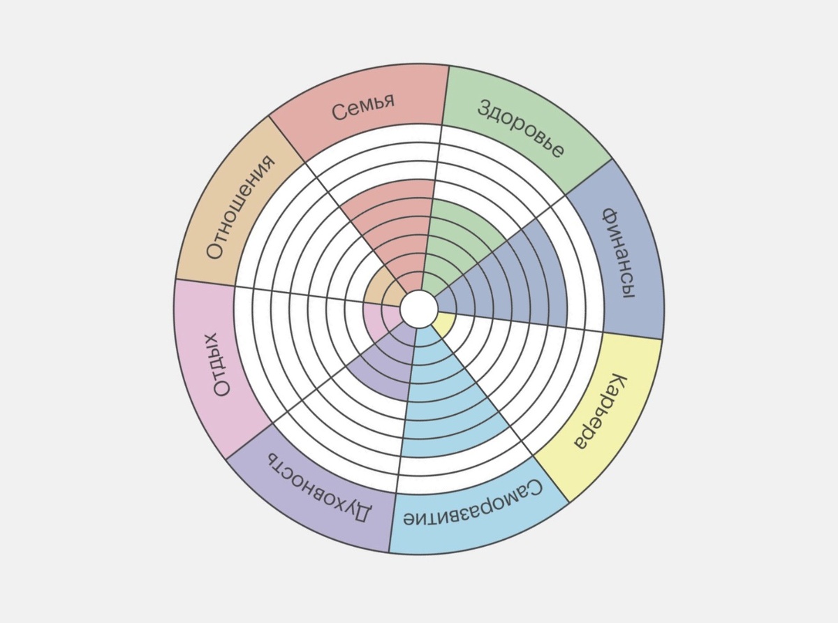 Вы знаете это колесо баланса, да? То самое, где надо честно оценить свою жизнь по 8 сферам и увидеть, что всё плохо.