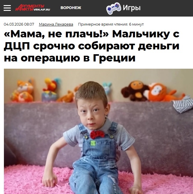Здравствуйте, дорогие наши помощники! Сегодня на мою просьбу и мольбу о помощи для нашего сына Тимофея откликнулись "Аргументы и факты | Воронеж". Спасибо огромное за понимание и поддержку Виктории. Вы добрый и чуткий человек, который понимает ту боль, что испытывает мама, когда не видит поддержки и понимания всей ситуации. 🙏♥️ Дай Бог каждому, кто творит добро — не важно, большое оно или маленькое — здоровья и благополучия в ваши семьи! Оно есть и приносит результаты! 🤗♥️🙏 — Ниже ссылки, где размещены посты. Мы очень просим: не проходите мимо! Тимоше нужна ваша поддержка 💕 ▎🔗 Публикации о Тимофее: — ▎📌 Реквизиты для помощи — 🏢 БФ "Подари шанс" - 1/6 от сбора (1 млн.) : https://chance.su/1797-drozdov-timofej.html ▎📋 Прозрачность Документы | Обоснование | Выписки | Чеки ▎🌐 Сбор в соцсетях VK | Telegram | ОК | Дзен | Taplink