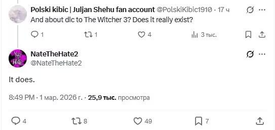 ⚡Новое дополнение для The Witcher 3 подтвердил ещё один инсайдер — NateTheHate заявил, что DLC существует
