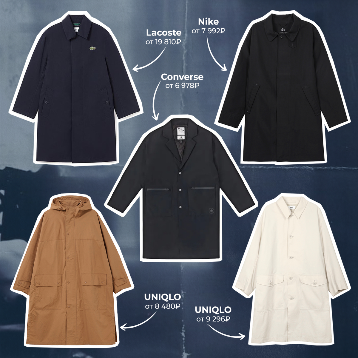 Как только начинается непонятная погода, то сразу вспоминаем о них. Рекомендуем присмотреться к этим брендовым айтемам с POIZON уже сейчас, чтобы потом не оказаться в ситуации «нечего надеть». UNIQLO, цена от 9 296₽* Nike, цена от 7 992₽* Lacoste, цена от 19 810₽* Converse, цена от 6 978₽* UNIQLO, цена от 8 480₽* *стоимость может изменяться в зависимости от курса и размера Больше интересного на нашем сайте POIZON