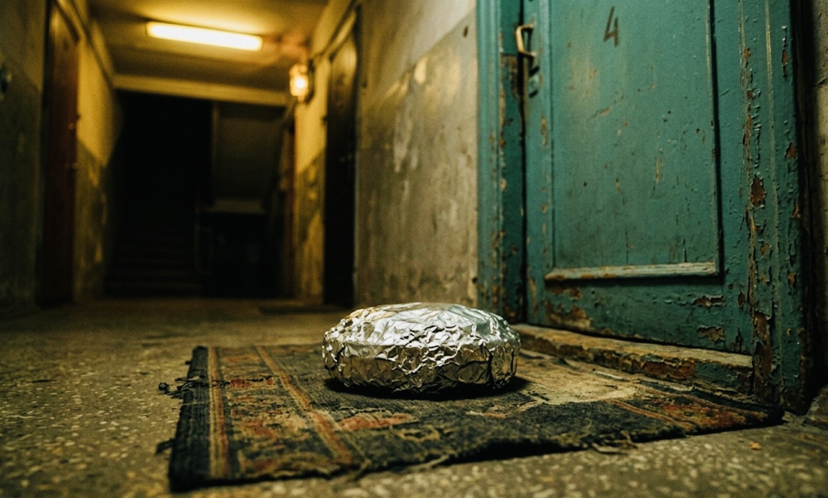 Позвонила в дверь, поставила на порог — в той же форме, в фольге. Не ждала, пока откроем. Я увидела в глазок, как она уходит.
