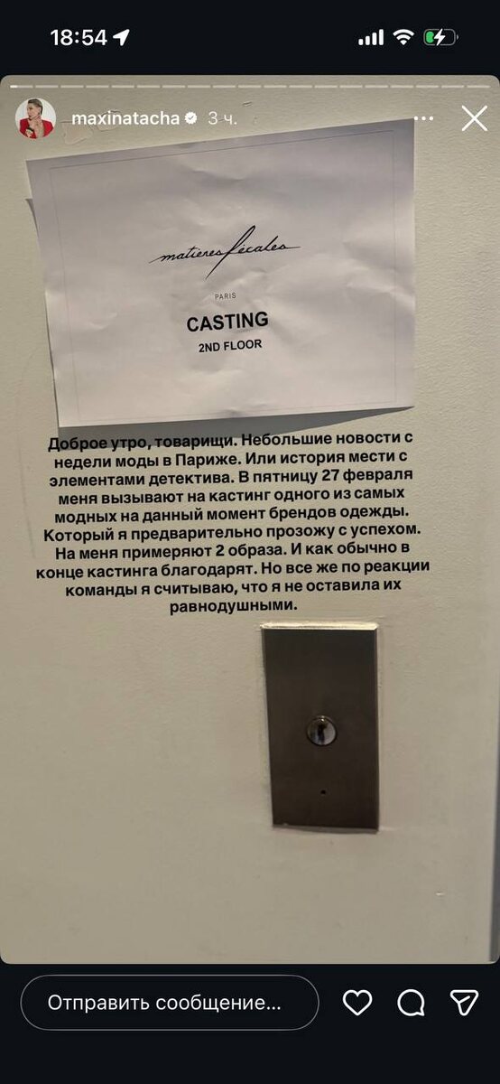 В запретграме - история о том, как Рената Литвинова отменила (по мнению Наташи Максимовой) участие Наташи Максимовой в показе Matieres