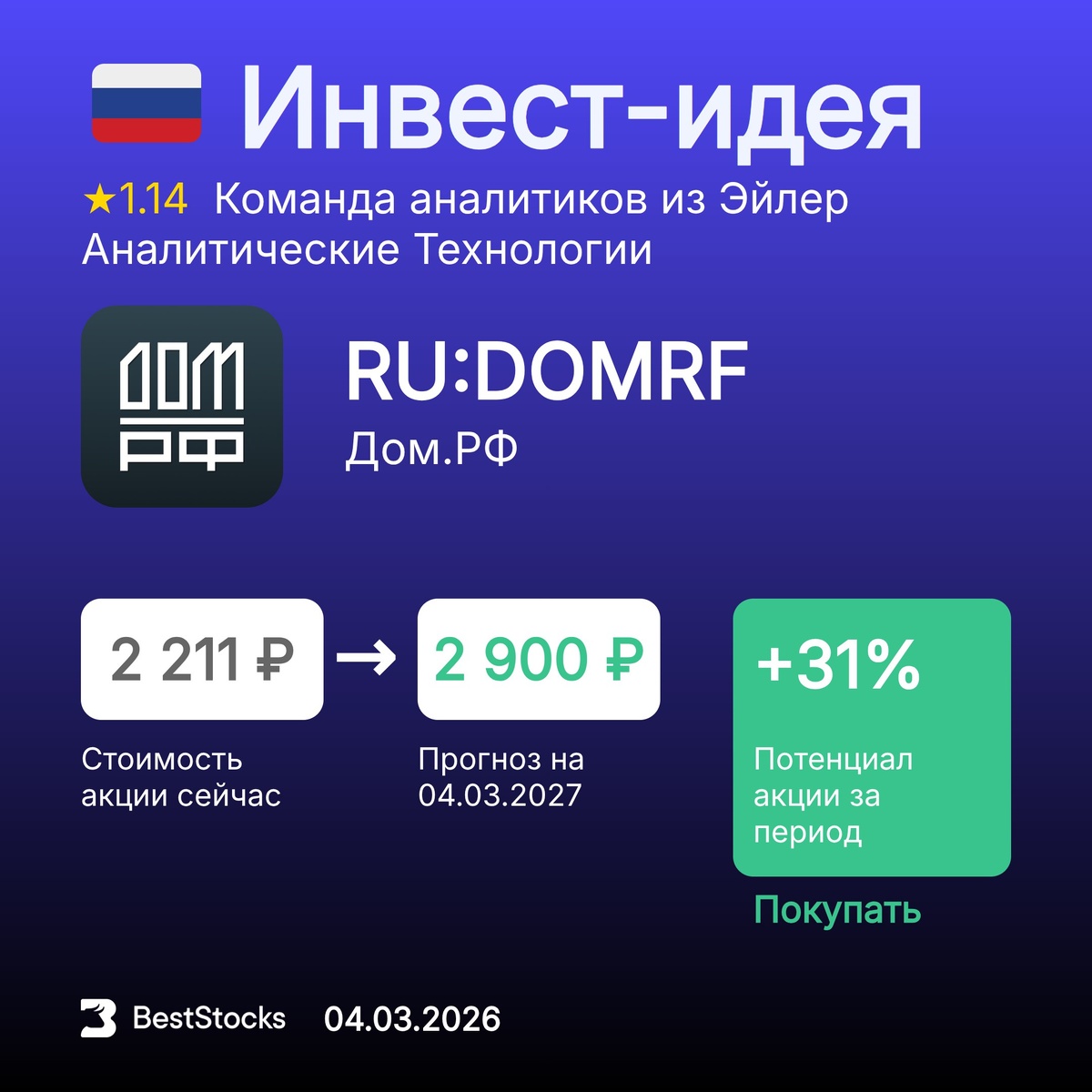 ΠΡΠΎΠ³Π½ΠΎΠ· ΠΏΠΎ Π°ΠΊΡΠΈΠΈ ΠΠΎΠΌ.Π Π€ ΠΡΠΎΠ³Π½ΠΎΠ·Π½Π°Ρ ΡΠ΅Π½Π°: 2900 β½ (+31%) Π Π΅ΠΊΠΎΠΌΠ΅Π½Π΄Π°ΡΠΈΡ: ΠΠΎΠΊΡΠΏΠ°ΡΡ ΠΠ°ΡΠ° ΠΏΡΠΎΠ³Π½ΠΎΠ·Π°: 04.03.2026 ΠΡΠΎΠ³Π½ΠΎΠ· Π΄ΠΎ: 04.03.2027 ΠΠ½Π²Π΅ΡΡ-ΠΊΠΎΠΌΠΏΠ°Π½ΠΈΡ: ΠΠΉΠ»Π΅Ρ ΠΠ½Π°Π»ΠΈΡΠΈΡΠ΅ΡΠΊΠΈΠ΅ Π’Π΅Ρ