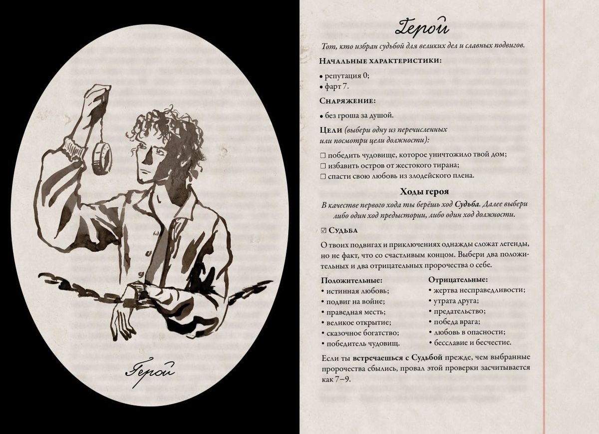 С начала предзаказа прошла неделя, и сегодня самое время рассказать поподробнее о главных героях этой игры. ⚓️ Ваши персонажи — пираты. Вольные волки, каперы на службе у короны или те, кто решил поискать лучшей жизни вдали от родных берегов. Но у всех есть четыре общих черты. Настоящий пират — сам себе закон. Он плывёт к горизонту — его манят неисследованные края. Он играет по-крупному и смекает на лету. Глупо строить планы, когда твой противник — самая переменчивая из стихий. ⚓️ Чтобы создать своего пирата, тебе потребуется пять шагов. 1. Выбери одну из девяти корабельных должностей и одну из семи предысторий. Они расскажут, какими умениями обладает персонаж и что он оставил на берегу. В конце концов, юнгами не рождаются, не говоря уже о капитанах. 2. Определись с характеристиками. Их у персонажа четыре: дерзость, изворотливость, дальновидность и репутация. А ещё у персонажа есть фарт — запас удачи. Потратив пункт фарта, можно избежать раны и добавить +1 к результату своего или да