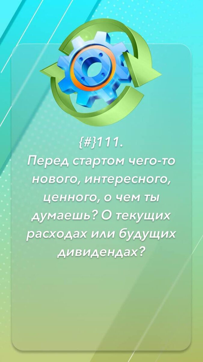 Перед стартом чего-то нового, интересного, ценного, о чем ты думаешь? О текущих расходах или будущих дивидендах?
