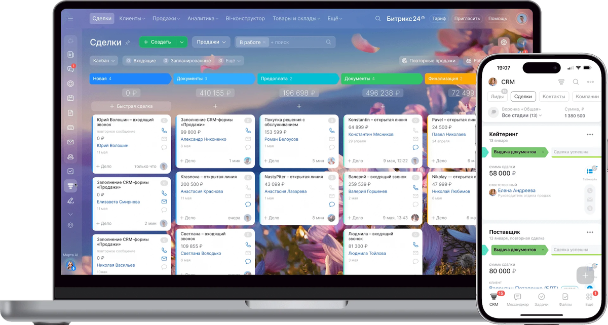 Если отдел продаж или поддержка активно работают со звонками, система не позволит выстроить полноценную систему учета разговоров, аналитики и автоматизации.
