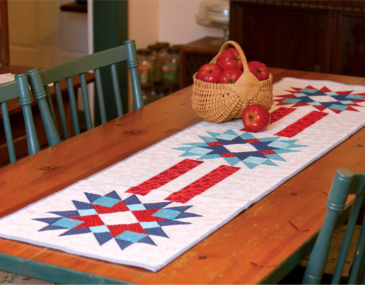 Дорогие наши, иногда хочется создать что-то свежее, лёгкое и вдохновляющее — как морской бриз, солнце на волнах и ощущение свободы на открытом пространстве. Сегодня создадим дорожку на стол с большими сияющими звёздами в оттенках глубокого синего, бирюзового и красного на кремовом фоне, перемежающиеся полосами. Получается узкий и длинный раннер размером 41 см × 163 см — идеальный для украшения обеденного стола, комода, подоконника или даже как настенный декор в морском стиле. Проект остаётся таким же точным и приятным в работе благодаря технике HST и QHST, но теперь он полностью про лето у моря, про путешествия и про ту радость, которую дарит нам природа. Давайте сотворим вместе эту лёгкую морскую сказку из ткани!