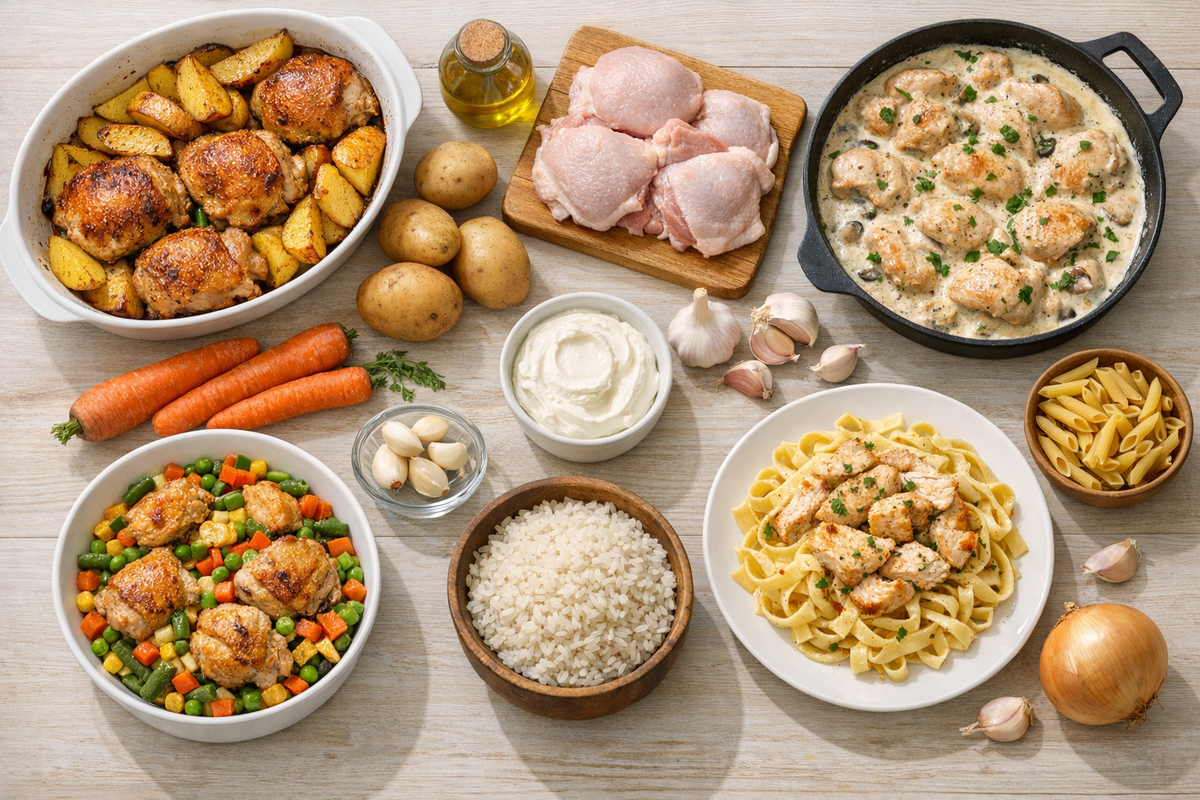 Ниже 10 ужинов из курицы: часть в духовке, часть на сковороде, много вариантов из простых продуктов.