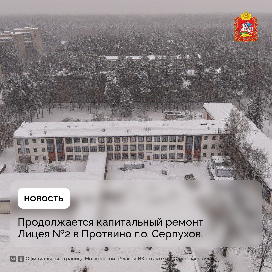 о. Серпухов. Сейчас строители выполняют черновую отделку и общестроительные работы, монтируют инженерные сети. В здании проведут кровельные, фасадные и отделочные работы, обновят входную группу, заменят системы отопления, вентиляции и канализации. Также благоустроят прилегающую территорию, закупят новую мебель и оборудование. Открыть обновлëнную школу планируют 1 сентября 2026 года. 🏙Подмосковье - актуальные новости