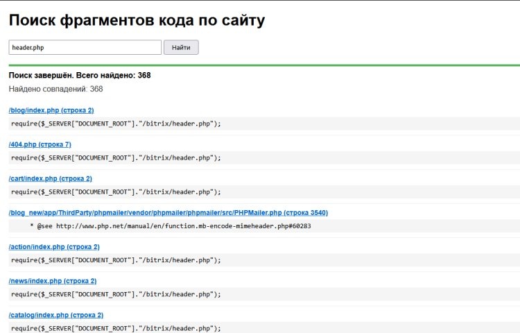 Данный инструмент пригодится разработчикам и администраторам сайтов для быстрого поиска фрагментов кода без использования консоли. Асинхронная отправка результатов делает работу комфортной даже при большом количестве файлов. Вы можете легко адаптировать скрипт под свои нужды: изменить набор расширений, добавить поддержку дополнительных типов файлов или улучшить интерфейс вывода.