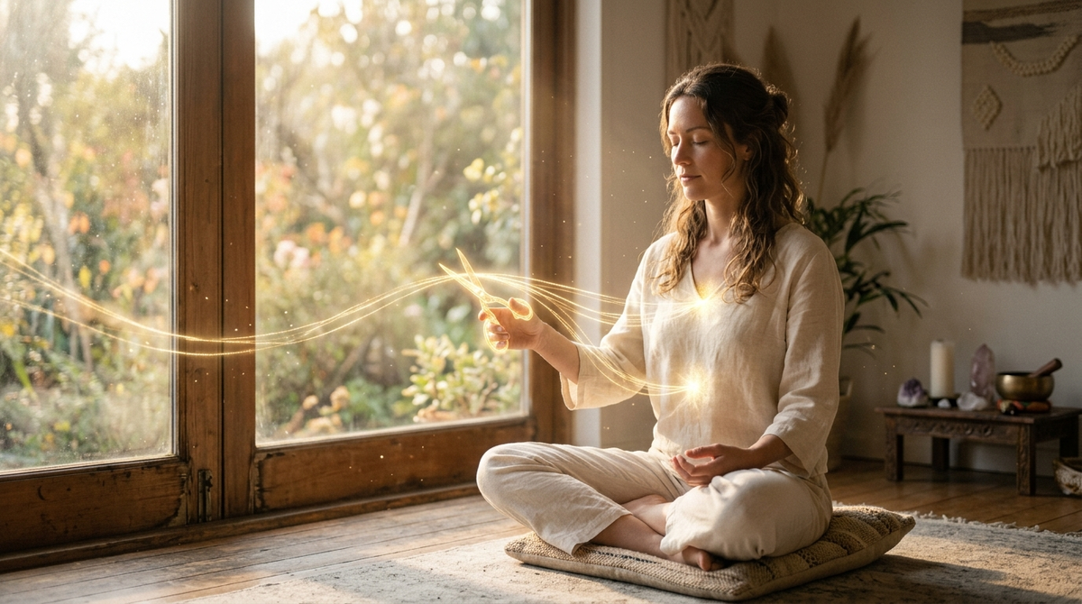 Мысленно возьмите в руки символ воли — золотые ножницы или сияющий клинок. Осознанно перережьте каждую связь.