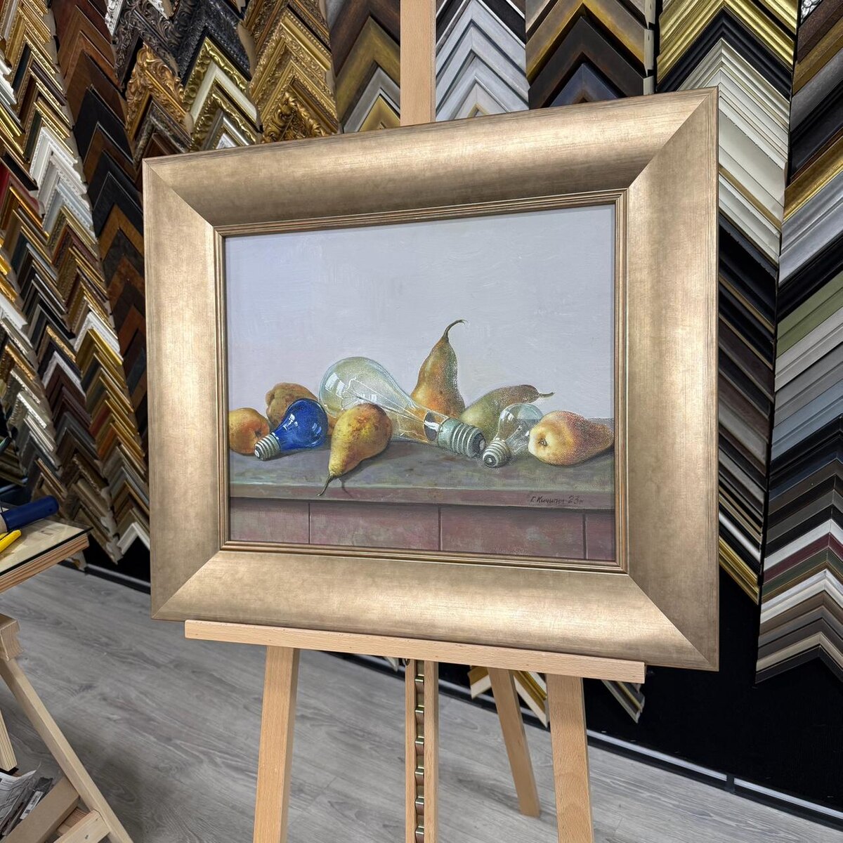 Такое вот пространственное оформление — много-много воздуха и тишины вокруг работы. Мы добились этого эффекта, оформив произведение в широкий, предельно лаконичный багет цвета высветленной бронзы. Никакой суеты — только форма, свет и пауза между предметами. Широкий багет сразу добавлял картине сильный акцент. «Висит груша — нельзя скушать» 🍐 💡 А вот багет так и хочется укусить за бочок))) Листая альбом Кичигина, который принесла наша заказчица Наталья, я удивился разносторонности автора. Георгий Кичигин был художником с мощным академическим фундаментом, который умело соединял иронию и философскую глубину, создавая работы одновременно предметные и метафорические. Как вам такое оформление? _________________ Арт-мастерская Багетъ — Искусство в каждой детали. 🕰️ 🎯 КОНТАКТЫ: 📍 Москва, Дмитровский пер., 4, стр. 1 🚗 Бесплатная парковка во дворе 🚇 5 мин от м. Театральная / Кузнецкий Мост / Охотный Ряд 📞 +7 499 110-12-49 🌐 bagetnayamasterskaya.com ____________ #багетнаямастерская,