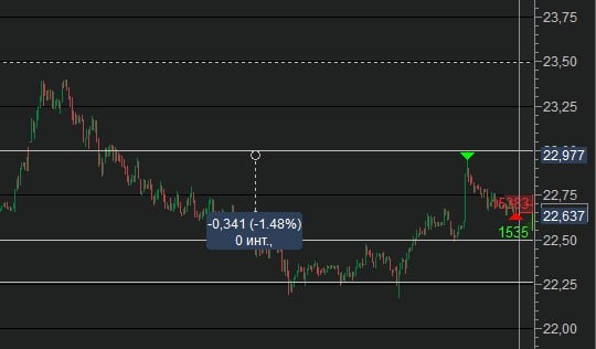По плану. Контр тренд на выносе Бакса. Как я написал ранее, я не считаю вынос бакса долгоиграющим позитивом при текущей ситуации. Выход на импульсе, рисковать не стану. Итог +1.4%