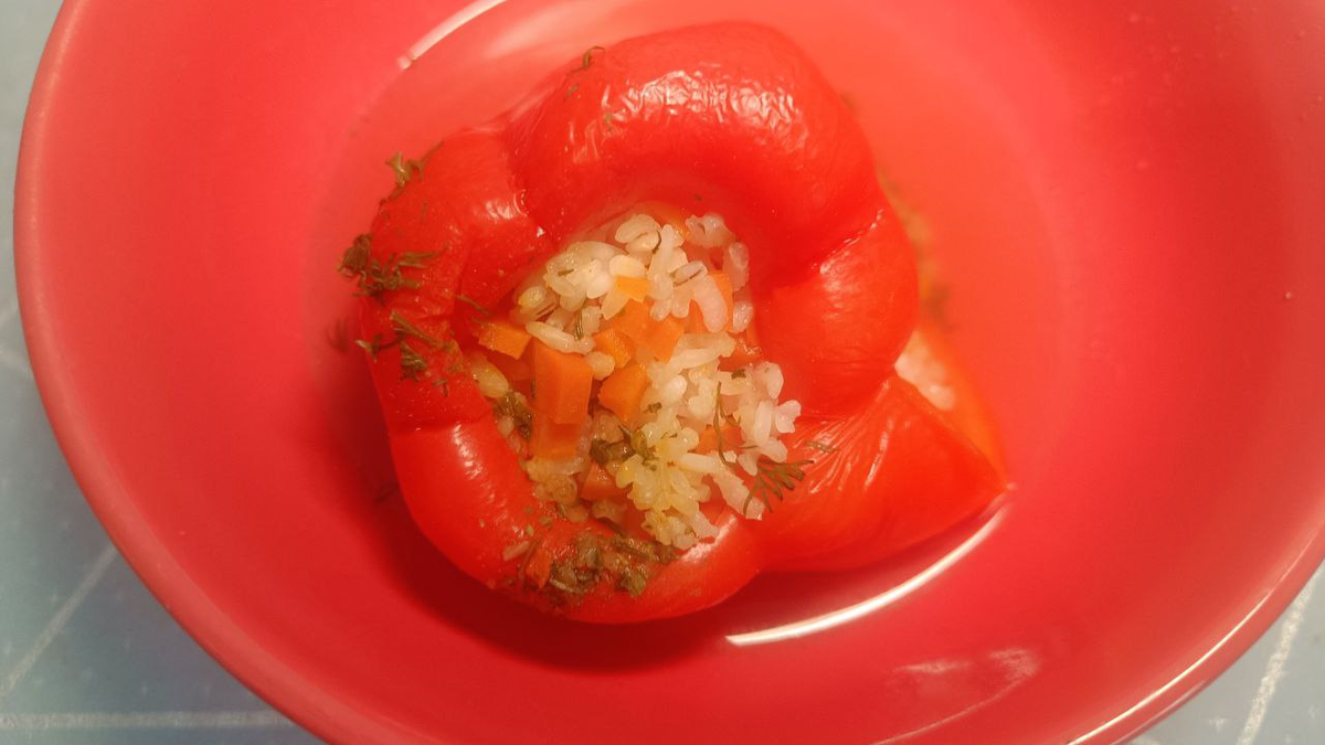 Полезный и легкий рецепт Фаршированные перцы — это не только вкусное, но и полезное блюдо, которое можно легко адаптировать под любые диетические особенности. Предлагаю вам вариант без масла и с минимальным количеством ингредиентов. Подходит для людей, восстанавливающийся после удаления желчного пузыря или соблюдающих пост. - Рис (крупа) — 75 г - Болгарский перец — 4 шт. (350 г) - Морковь — 1 шт. (70 г) - Укроп — по вкусу - Сушеные овощи — 1 ч. ложка - Куркума — 1/2 ч. ложки - Паприка — 1/2 ч. ложки - Лавровый лист — 1 шт. - Соль — по вкусу - Вода — 1 литр 1. Подготовка риса: Тщательно промойте рис под холодной водой до тех пор, пока вода не станет прозрачной. Это поможет избежать слипания зёрен и сделает блюдо более легким. 2. Овощи: Очистите морковь и нарежьте ее кубиками или натрите на крупной терке. 3. Смешивание начинки: В глубокой миске смешайте рис и морковь. По желанию добавьте немного соли для улучшения вкуса. 4. Подготовка перца: Осторожно удалите семена из перца, чтобы не