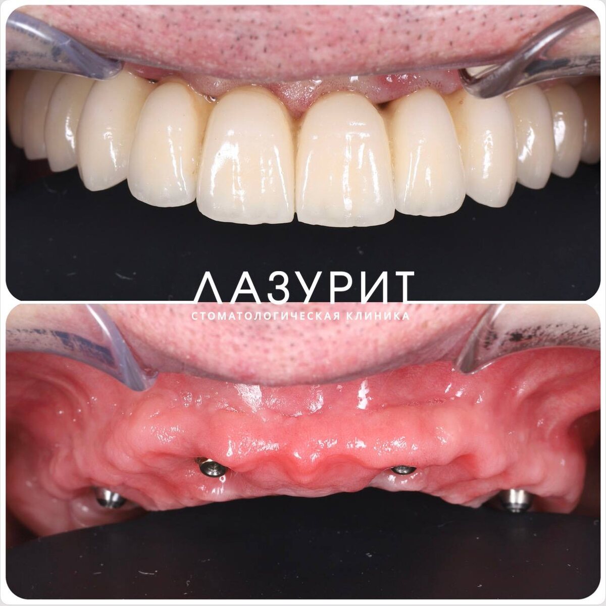 ✨ 📍 Игорь Михайлович обратился в клинику «Лазурит» 🏥 будучи, как он признается, в полудепрессионном состоянии. К своим 60 годам он полностью остался без зубов на верхней челюсти и частично на нижней. Со временем привычные действия стали приносить только боль и дискомфорт 😣 — и во время еды 🍽️, и в общении . На первичной консультации у стоматолога-ортопеда Дениса Ашкалова 👨⚕️ после диагностики 🔍 был разработан комплексный план лечения 📋. Сначала пациент был направлен на хирургический этап к доктору Артему Мартыненко 👨⚕️: верхнюю челюсть было решено восстанавливать на 4-х имплантатах 🔩, а для нижней челюсти подобрали комбинированное решение с опорой на собственные зубы и частично съемным протезом 🦷, чтобы уложиться в запланированный бюджет 💰. — В день операции 🏥 мы сразу установили Игорю Михайловичу временные конструкции 🦷, — рассказывает Денис Викторович, — чтобы пациент обрел зубы и мог чувствовать себя комфортно с первого дня 😊. 📌 После успешной интеграции имплант