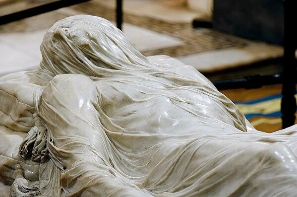 Человечество имеет богатейшее наследие. Это отражается во многих сферах, но особенно заметно в уникальных творениях скульпторов эпохи Возрождения. Глядя на их работы, невозможно представить, что они были созданы без сверхъестественного вмешательства. Впрочем, возможно это и не так. Работать над этим произведением начал гениальный мастер Антонио Коррадини. Он воплотил образ в гипсе, но закончить не успел. Смерть забрала его к себе. Труд продолжил его ученик, доселе безвестный Джузеппе Санмартино. Образ Спасителя поражает. Так и кажется, что невесомая вуаль вот-вот спадет под дуновением небольшого ветерка. А между тем все изваяние выполнено из единого куска мрамора. Впрочем, есть легенда, что после смерти Коррадини незаконченную статую накрыли легкой тканью, и она превратилась в камень. Последователю досталось лишь слегка доработать шедевр. Секрет невесомого мрамора смог повторить и довести до совершенства Рафаэль Монти. Глядя на его произведения, недоумеваешь, как такое можно сотворить